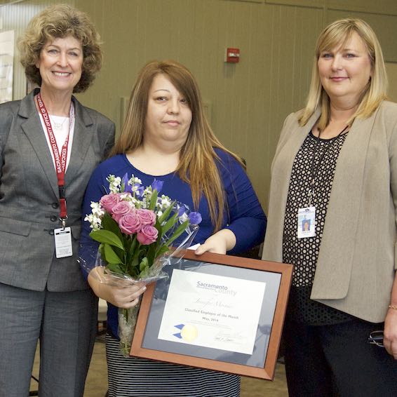 Jennifer Morones, School Secretary, was nominated by Principal Lauren Roth for her contributions to the Sacramento County Office of Education. As School Secretary at SCOE's Leo A. Palmiter Jr./Sr. High School campus, Ms. Morones ensures that teaching and support staff have all the needed materials to make the day run smoothly. Says her supervisor, "A school's secretary is often the first person you meet as you enter the school for the first time. Jennifer is always personable with stakeholders: parents, teaching staff, students, counselors, and Sacramento County Probation officers." She helps with the set-up of school events such as assemblies, mock elections, school dances, and transition fairs—to name just a few. She is responsible for record-keeping and accounting of monies generated from the Culinary Café program, the campus Urban Oasis Farmers Market, the Leo's Links Hot Dog Cart, and Student Body Funds. Her supervisor concludes, "Staff often mention how fortunate we are to have Jennifer at our school. She is very flexible, takes initiative, and has a great work ethic. If there is a stressful situation, she has a calm demeanor. She has a keen ability to prioritize and multi-task in a high volume office. We love her!" Ms. Morones has been employed by the Sacramento County Office of Education since August 2002.